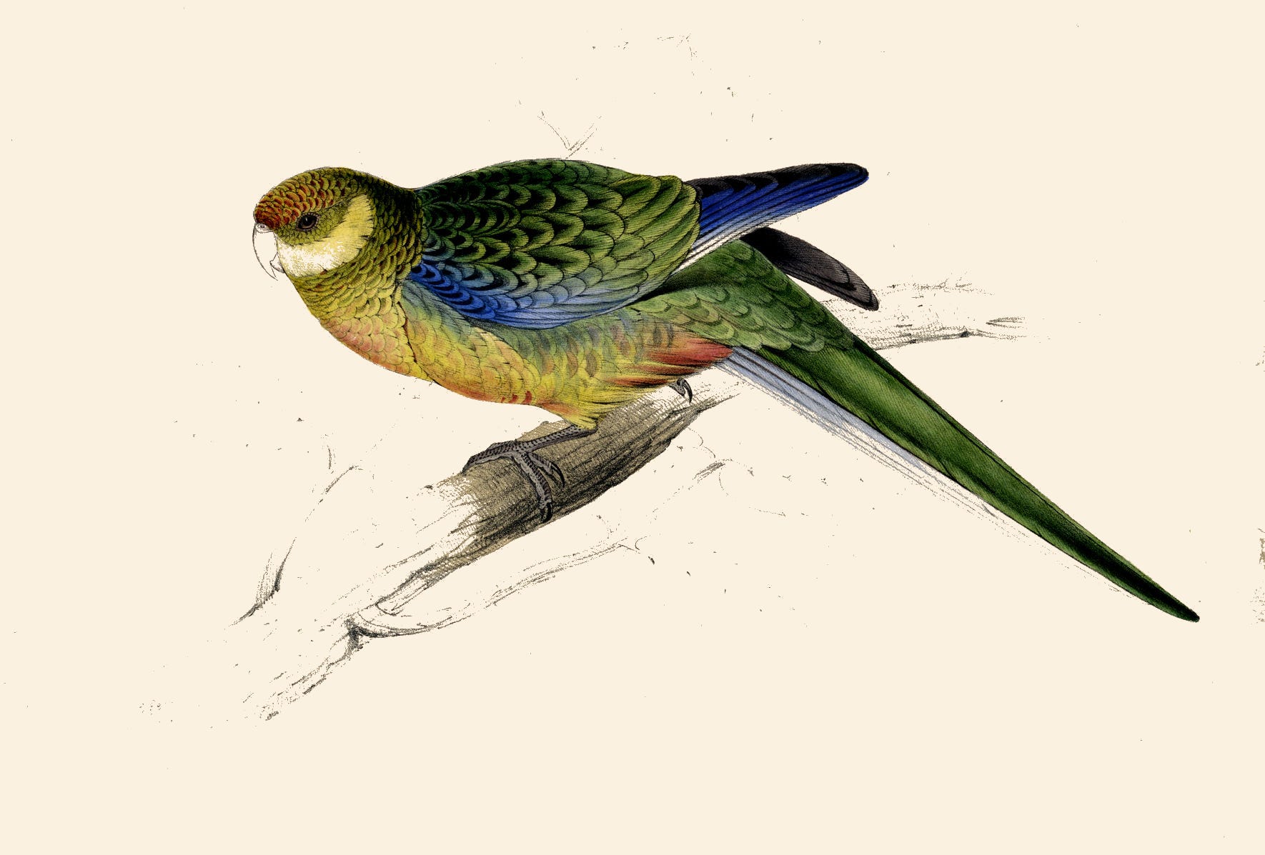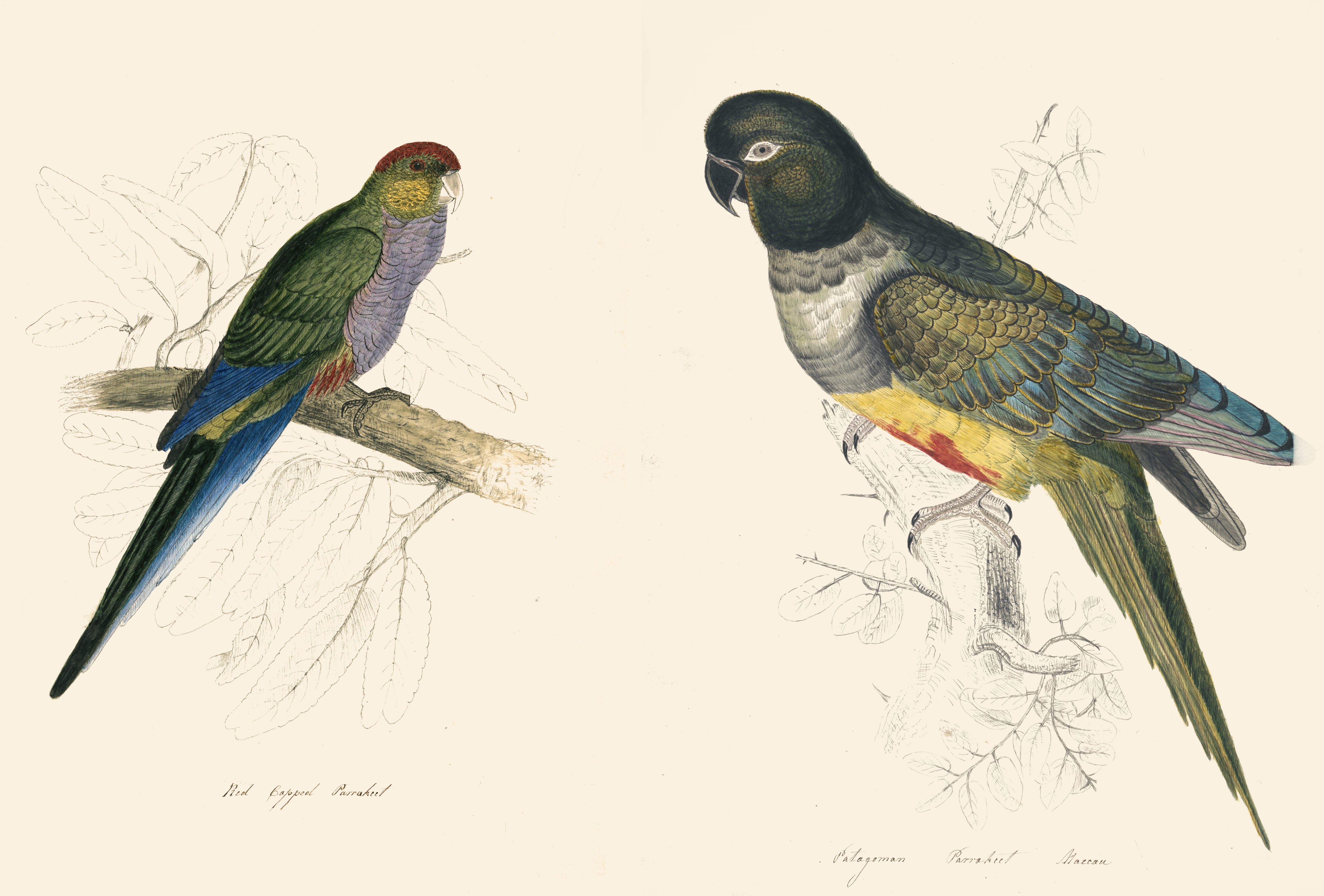 Remember that Edward Lear did these paintings, and many others, before he was eighteen, using the lithographic technique he had taught himself. He had no money to pay for text pages, so only the parrot plates were printed. I hope you enjoy them.
