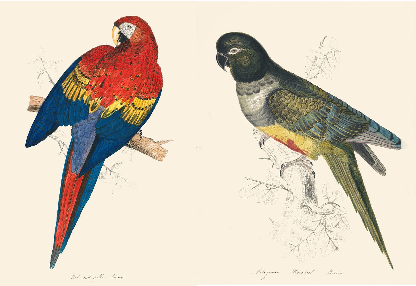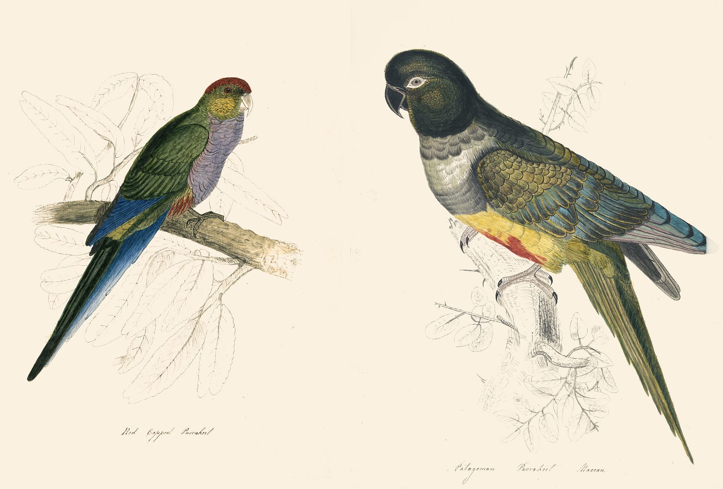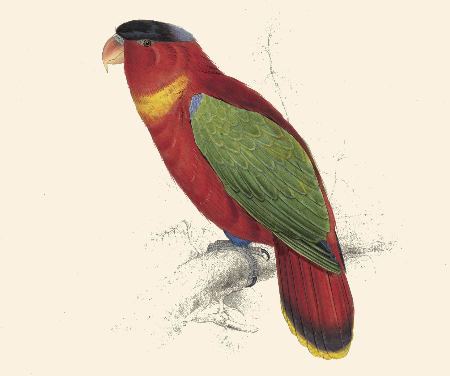 Well, that got me wondering if birds feel love or any emotions at all, so I did some research about it. But before I share with you what I found, I want to mention that today’s newsletter also features parrot paintings by Edward Lear, which we have already talked about. I thought it was an appropriate decision, considering a parrot was what got me on this subject in the first place.